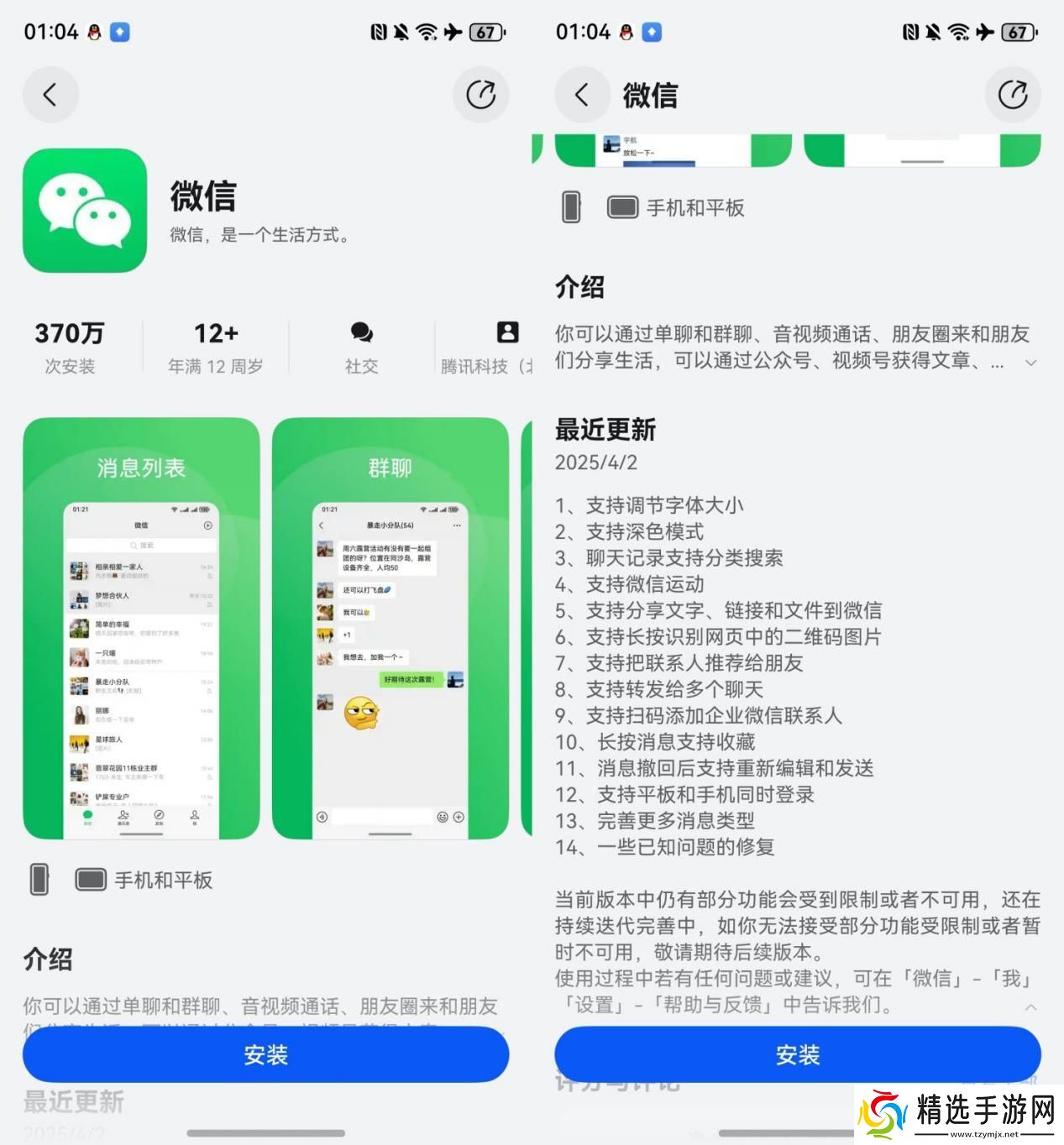 说到微信,3 月 20 日发布会之后,微信确实迎来一波打鸡血似的更新,不到两周时间里就完成了两次重要版本的升级,尝鲜版或者邀测版更是每隔 3-4 天就会迎来更新,陆续为大家带来了双端同时登录、深色模式、字体大小调节、指纹或面容支付、长按识别网页二维码、微信运动、转发多个聊天等关键功能,升级速度很快。早前腾讯 WXG(微信事业群)员工 @客村小蒋 也曾在微博发文透露,微信的绝大部分功能都会在鸿蒙版上线。
