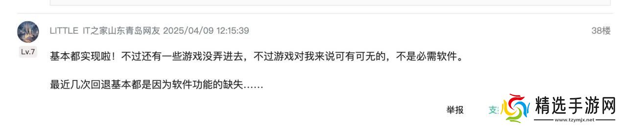再比如,昵称为 LITTLE 的家友也高呼“基本都实现啦!”不过同时也提到还有一些游戏还没有实现,但对他来说并非必需软件。