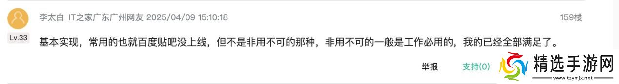 159 楼 ID 为“李太白”的朋友也表示,自己心愿单里的 App 基本都实现了,常用的也就百度贴吧没上线,但也不是非用不可的那种,工作必用的已经全部满足了。