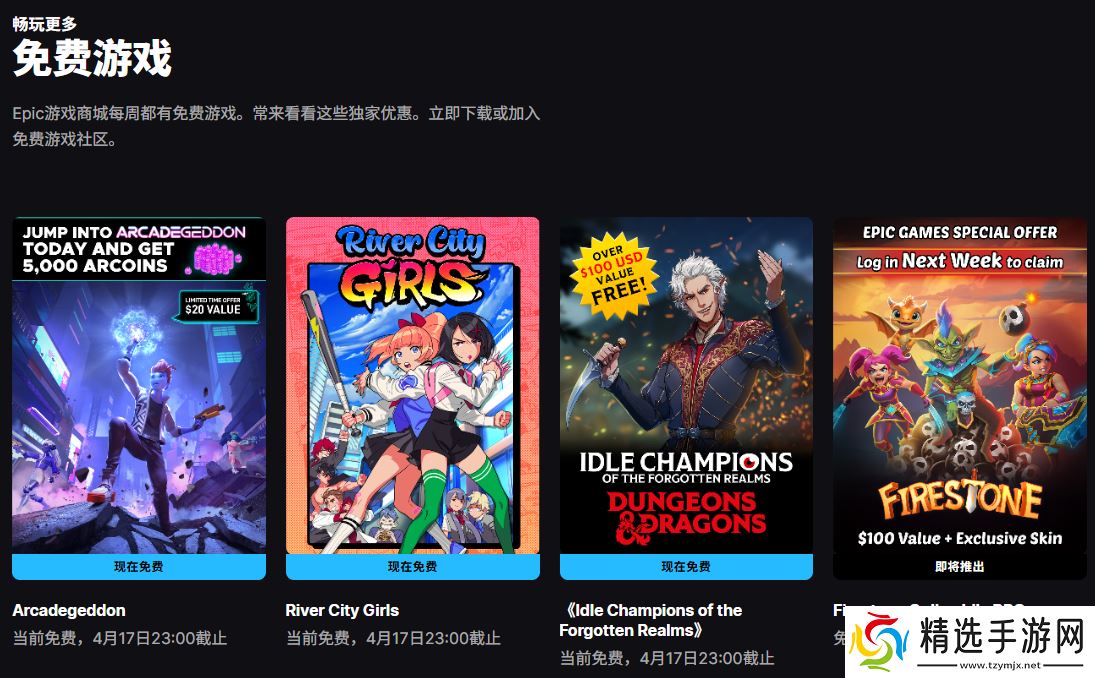 本站 4 月 10 日消息,Epic 本周送出的游戏是《热血少女》《酷玩乱斗》《遗忘国度之闲置冠军》,下周送出的游戏是《Firestone Online Idle RPG》。