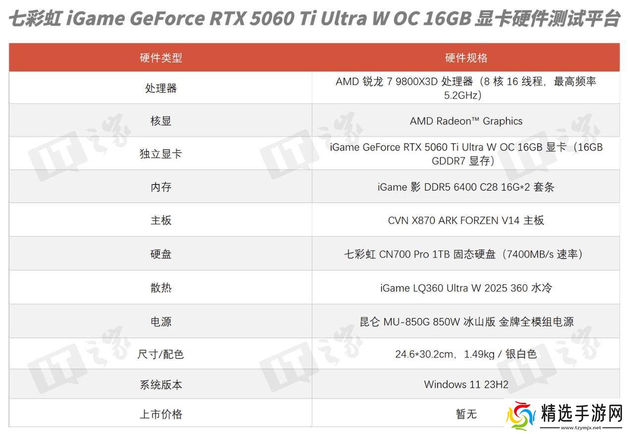 我们已率先拿到了七彩虹的iGame GeForce RTX 5060 Ti Ultra W OC 16GB显卡,并通过一系列测试来验证其实力。为了充分发挥这款显卡的性能,我们搭建了一个高性能的测试平台。