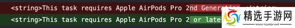 如图所示,苹果系统代码中原先标注的“AirPods Pro 2nd Generation”现改为“AirPods Pro 2 及更新型号”(本站注:这里似乎是某项功能的设备限制)。