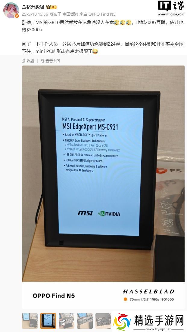结合博主 @金猪升级包 分享的图片,我们可以看到微星在现场展示了一款基于 DGX Spark 的个人 AI 超级计算机 ——EdgeExpert MS-C931。