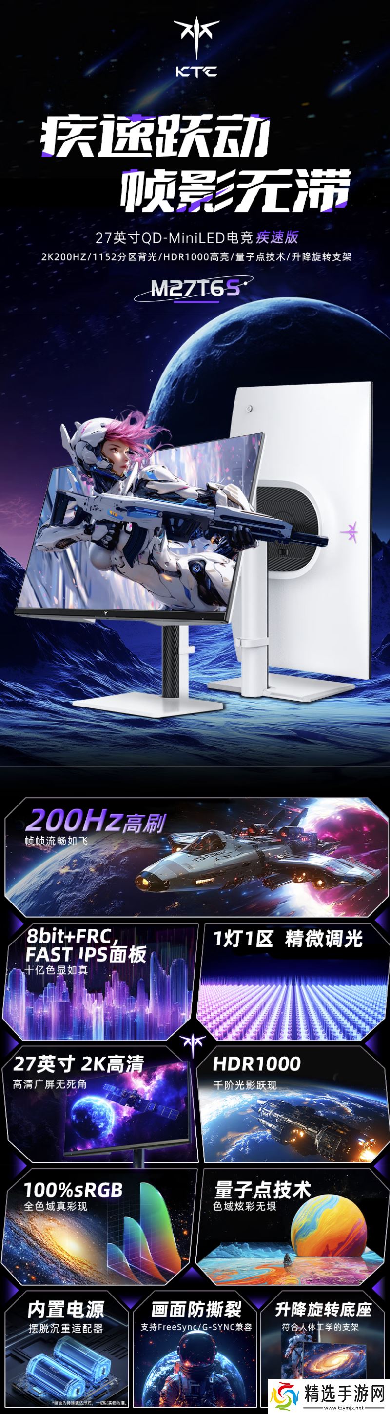 本站 5 月 18 日消息,KTC 现已在京东上架一款型号为“M27T6S”的 27英寸显示器,这款显示器主打“2K 200Hz Mini LED”,定价为1399元,将于 5 月 19 日(明天)晚上8点首销,定价为 1399 元。