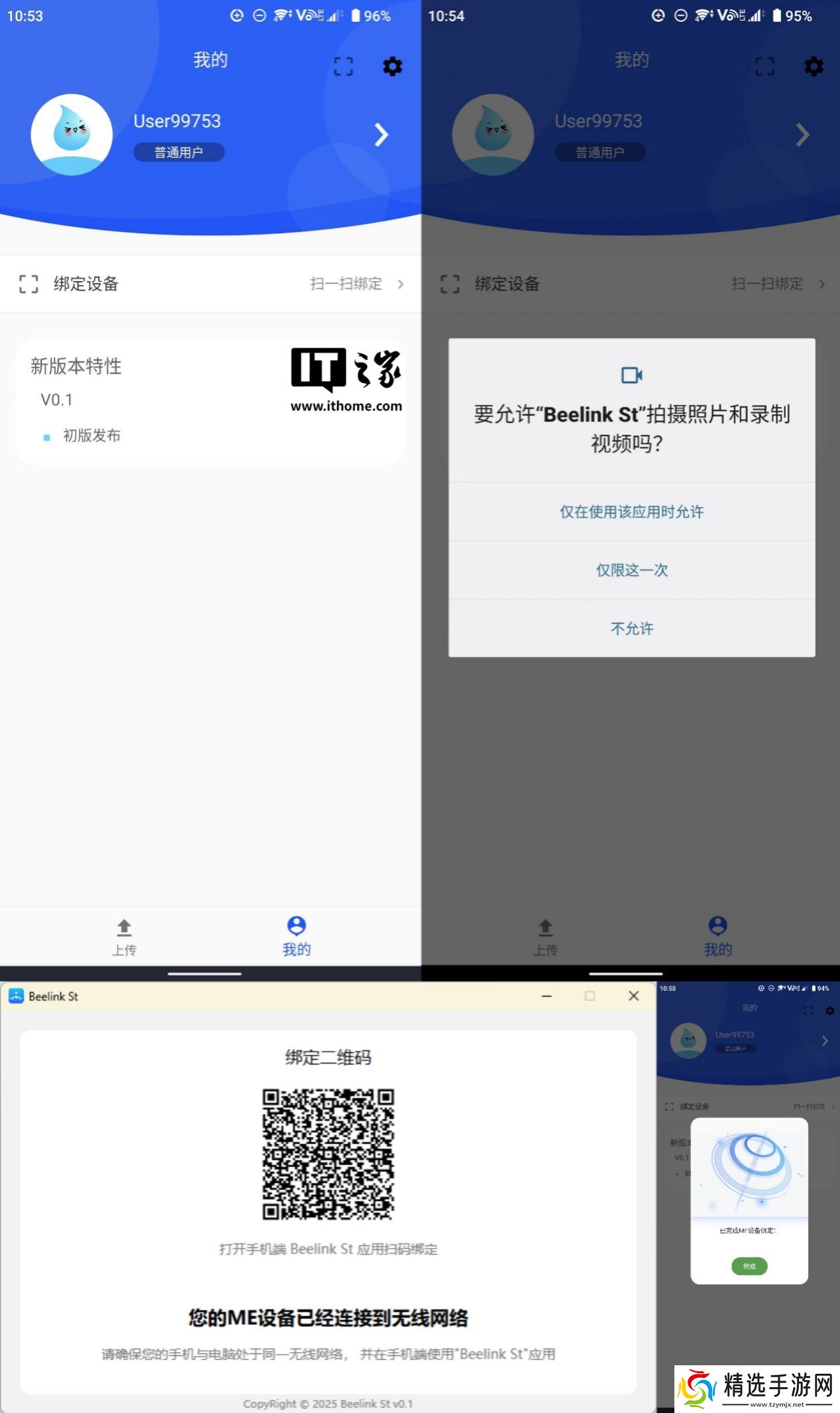 系统提示 "是否允许 Beelink ST 拍摄照片和录制视频" → 点击 "允许"(相机权限用于扫描二维码)