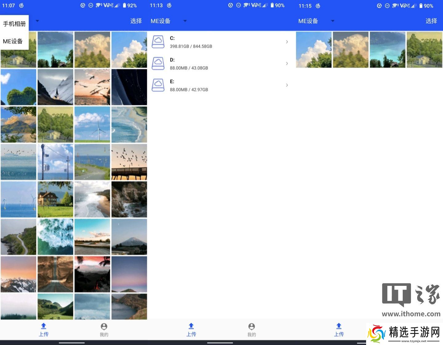 2.浏览 ME 设备内容:在首页左上角选择 "ME 设备",界面将显示 ME mini 设备上的可用磁盘列表。点击目标磁盘,进入磁盘浏览界面即可查看已上传的照片。