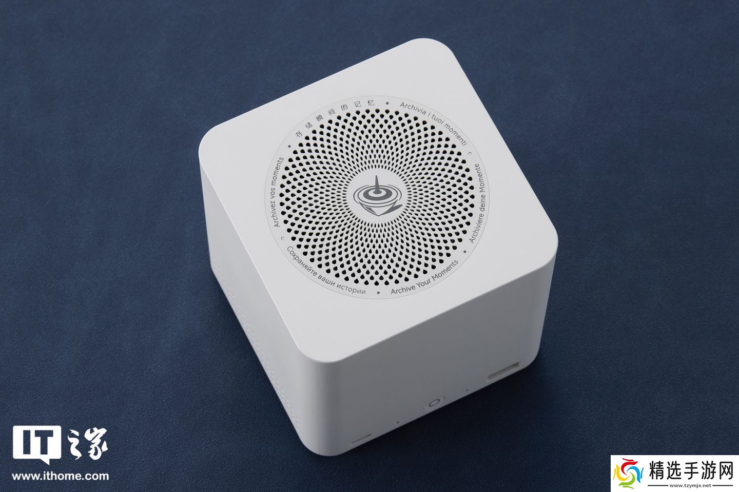 除去外包装,我们直接可以直接看到 ME mini 真机,其外形要比想象中更小,单面尺寸接近于手掌大小(具体为 99×99×98.3mm)。