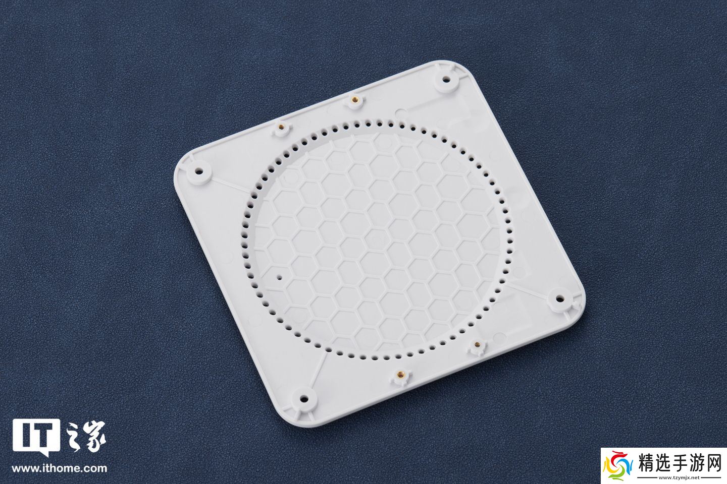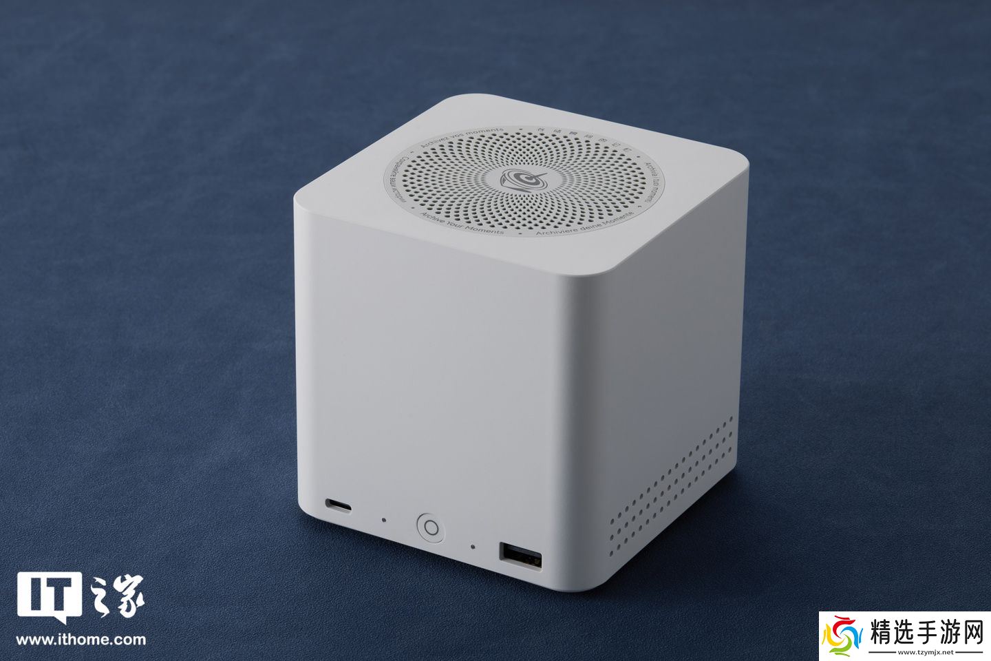 说到蜂巢,其顶部水滴散热孔集中且密集,暗含「数据汇聚」隐喻。这款珍珠白配色有着类似于陶瓷般的光泽表现,也打破了大部分人想象中关于 NAS 设备「黑匣子」类的刻板印象,同时让它看起来不会太过于单调。