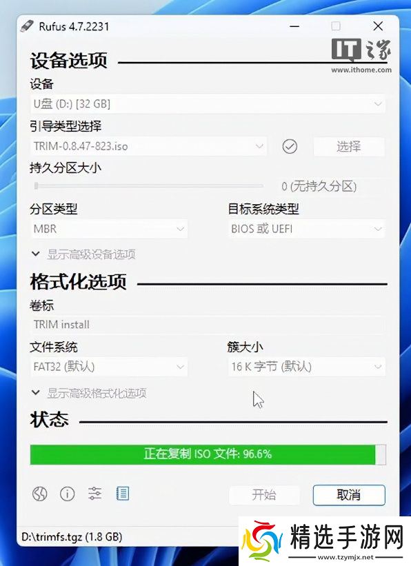 如果要想安装飞牛 OS,我们需要首先准备一个至少 16G 的 U 盘。将 U 盘插入电脑 USB 接口后,通过 rufus 等工具烧录一个飞牛 OS 镜像启动盘。等待进度条显示准备就绪,此时 U 盘引导盘已制作完成,可以安全拔出设备准备工作。