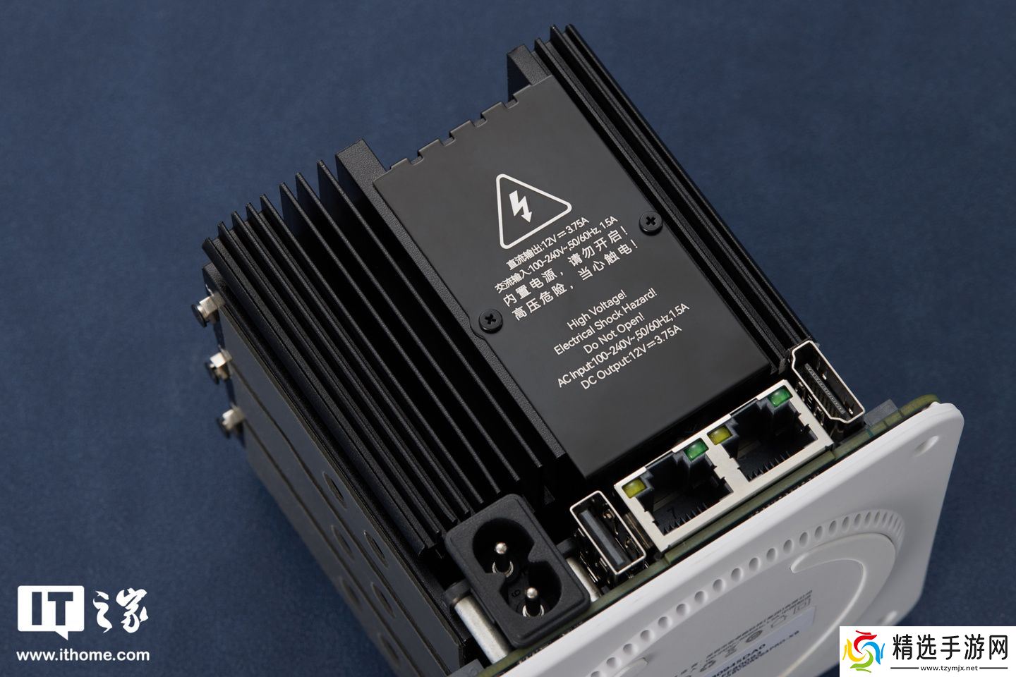 机身背面则是 45W(12V 3.75A)的内置电源。这一功率对于一款 N200(最大 15W)小主机来说已经十分宽裕,能够保证系统稳定运行,且实测温控表现也是相当不错的。