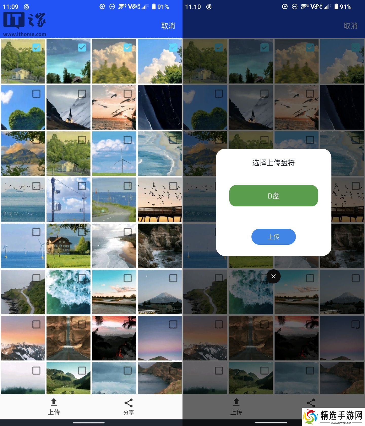 每张图片右上角会出现可勾选方框