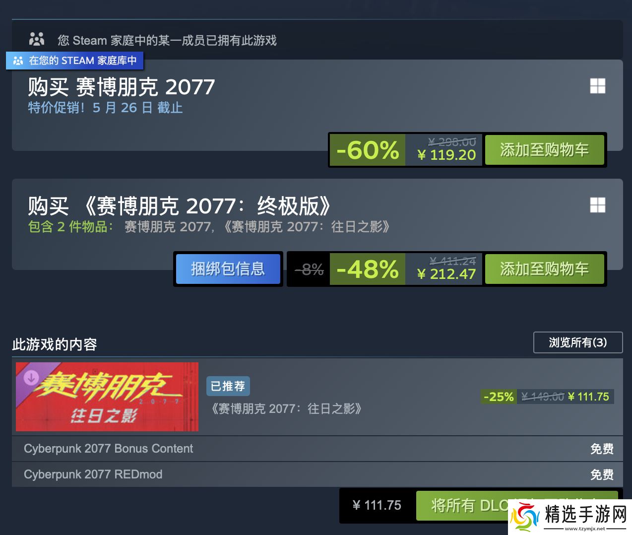 除了游戏本体外,包含《往日之影》DLC的终极版本现已开启5.2 折优惠,标准价447元,优惠后212.47 元。