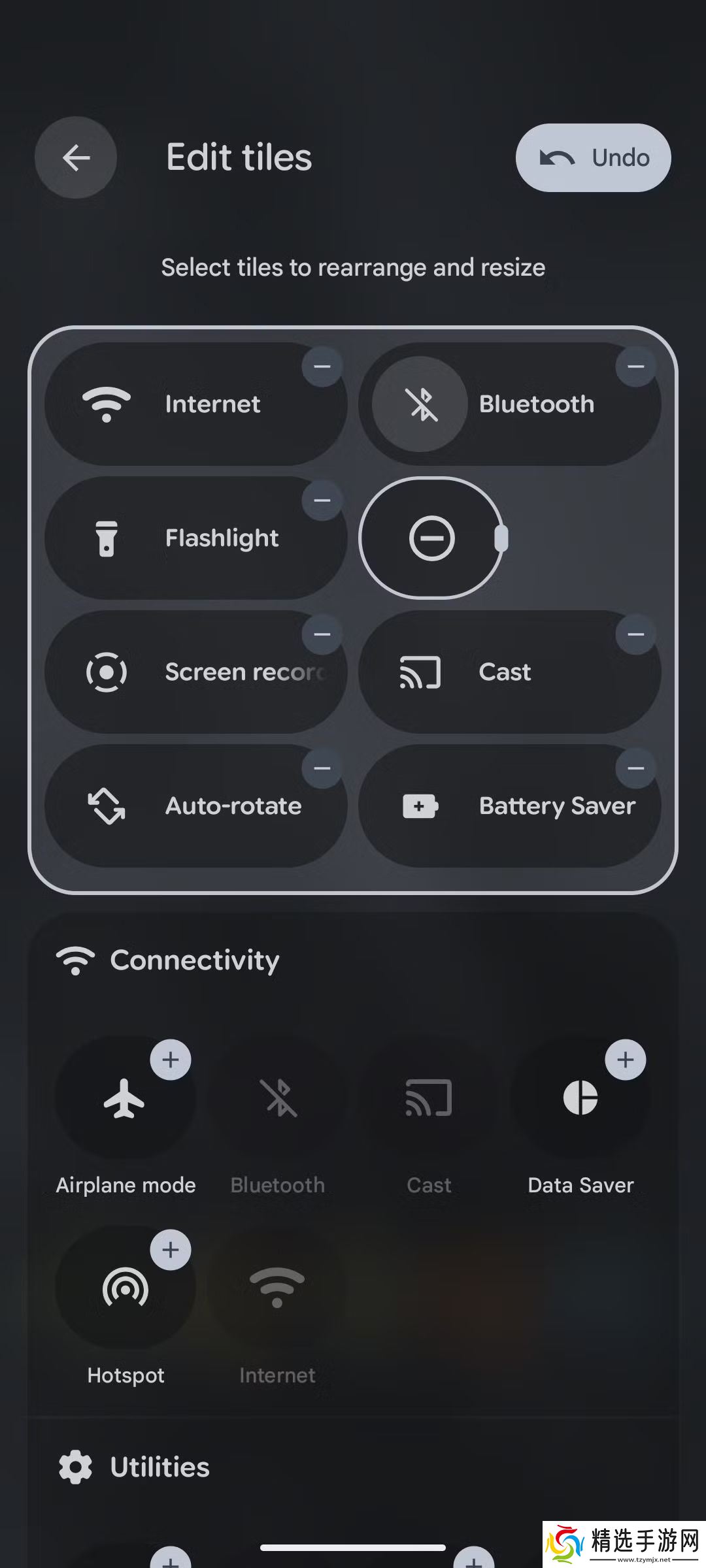 用户可以通过熟悉的编辑模式(点击铅笔图标)调整选项大小,点击任意快速设置选项后,即可显示可拖动的控件,将其从 2x1 调整为更小的 1x1 布局。本站附上截图如下: