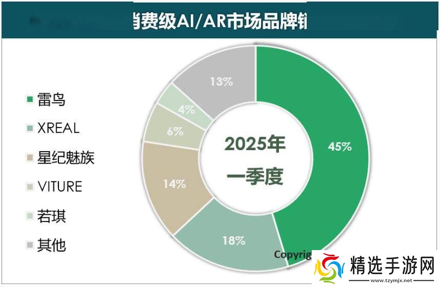 雷鸟创新的市场领先地位并非一朝一夕之功。数据显示,自2022年以来,雷鸟创新已连续三年稳居中国市场第一。2024年全年,其在中国线上市场的占有率便已达到35.6%,领跑行业。进入2025年,雷鸟创新的市场优势进一步扩大,第一季度即以50%的市场份额傲视群雄。