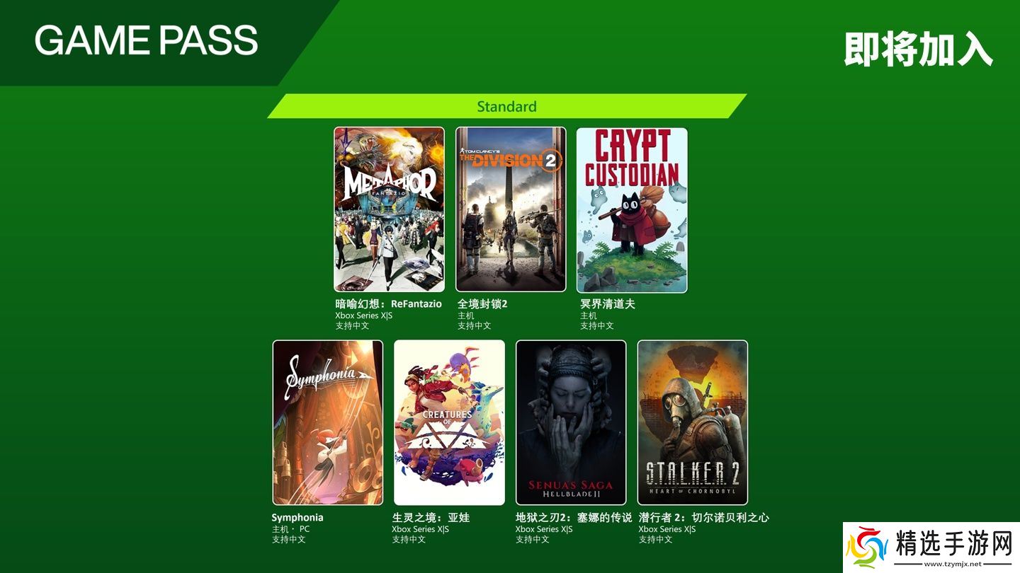 另外,《暗喻幻想:ReFantazio》《全境封锁 2》《冥界清道夫》《Symphonia》《生灵之境:亚娃》《地狱之刃 2:塞娜的传说》《潜行者 2:切尔诺贝利之心》即将加入 Game Pass Standard。