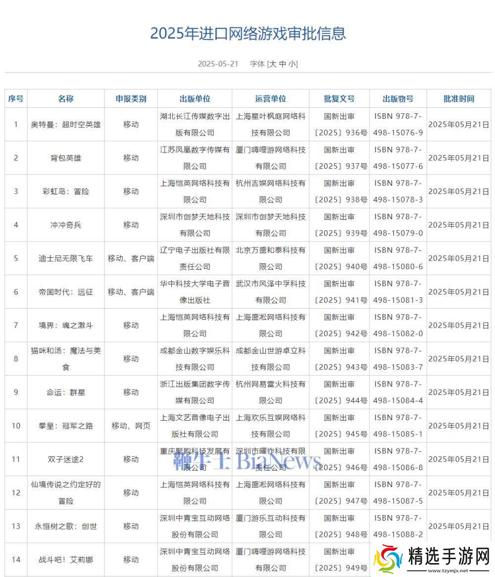 2025年度进口网络游戏审批动态揭晓,国家新闻出版署最新公告显示,5月份共有14款海外游戏成功通过审批。据统计,截至目前,今年已累计有44款进口网络游戏获得正式批准。