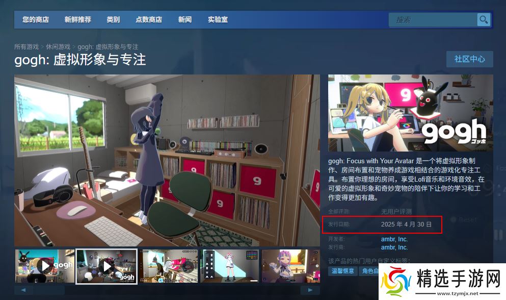 《gogh:虚拟形象与专注》是株式会社ambr开发的虚拟形象游戏。而这款游戏的发售时间就是2025 年 4 月 30 日,游戏预载时间大概是前一天,到时候注意一下即可。