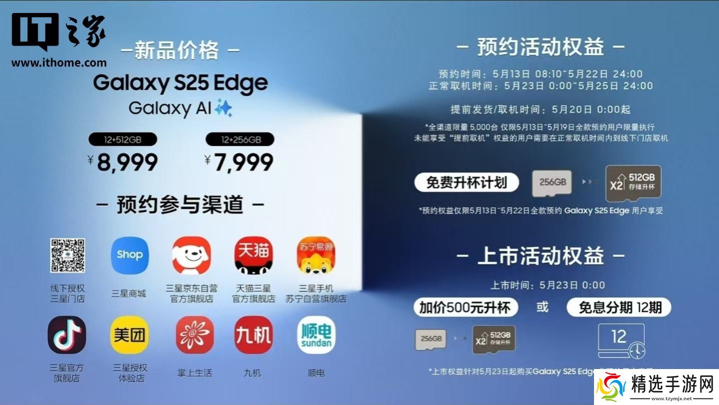 三星 Galaxy S25 Edge 国行售价7999 元起,5 月 23 日正式上市。