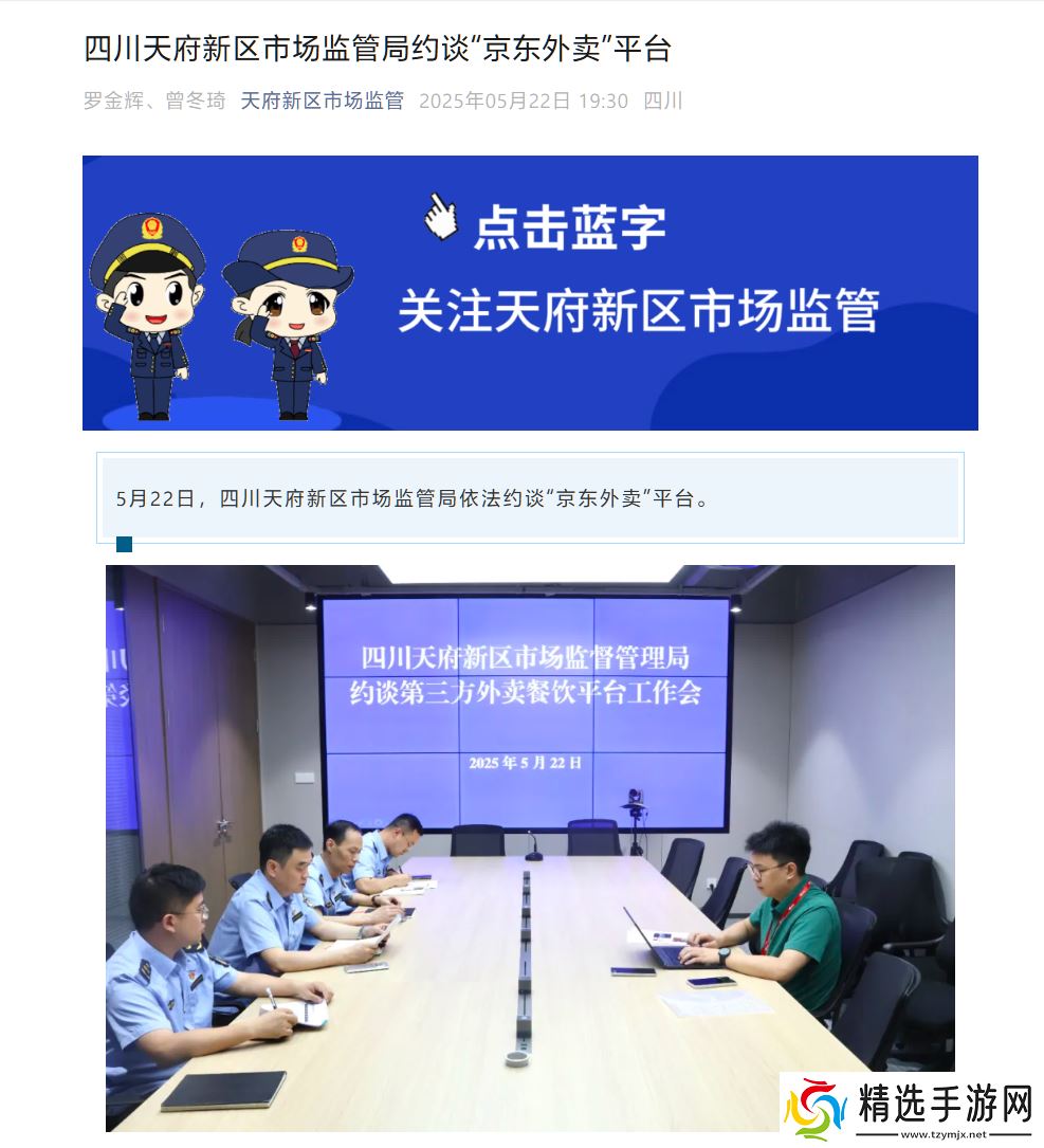 本站 5 月 22 日消息,本站从天府新区市场监管公众号获悉,四川天府新区市场监管局今日依法约谈“京东外卖”平台。