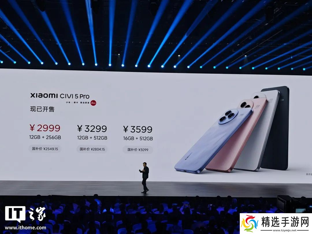 小米 Civi 5 Pro 12GB+256GB 售价2999 元,12GB+512GB 售价 3299 元,16GB+512GB 售价 3599 元,现已开售,都支持国补。
