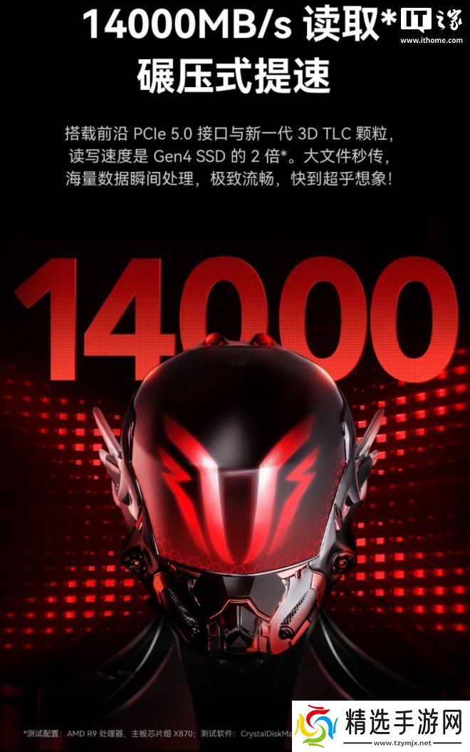 雷克沙 ARES PRO 搭载 PCIe 5.0 接口与 3D TLC 颗粒,官方称在 AMD R9 处理器和 X870 主板芯片组下使用 CrystalDiskMark 测试,其读取速度达 14000MB/s,读写速度达 PCIe 4.0 固态硬盘的两倍。