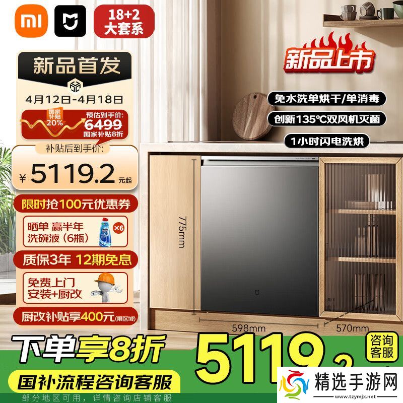 本站 4 月 14 日消息,小米米家智能嵌入式洗碗机 P20(18 套)现已在京东平台开售,新升级消存一体,售价 6499 元,国补价 5119.2 元起。