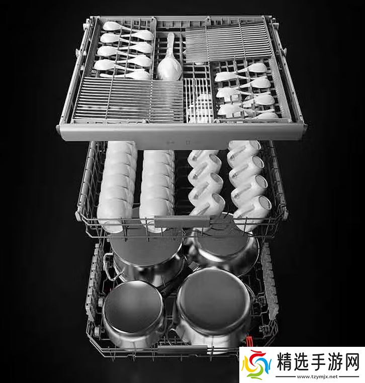 产品内部一次可容纳 130 件餐具,三层碗篮配备两侧红酒杯托。变频排水泵净排洗涤残水,三重滤网分化残渣。科学定时巡航抑菌,保持腔内干爽。新品精准检测碗碟污渍程度,智能适配洗涤时长,自动精准投放洗碗液,一次加满可用 3 周。