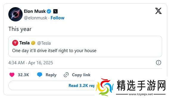 本站注意到,今天早些时候,特斯拉在 X 平台的官方账号发布消息,称未来用户的汽车将能够自动驾驶到你家,对此马斯克回应称:“今年。”