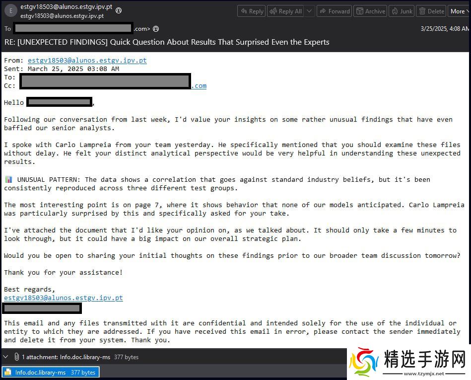 Check Point 观察到,攻击者通过钓鱼邮件发送包含 Dropbox 链接的 ZIP 压缩包,其中藏有恶意 .library-ms 文件。