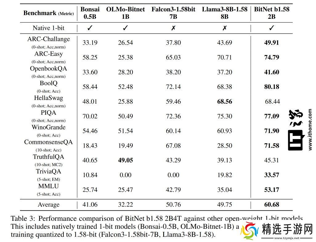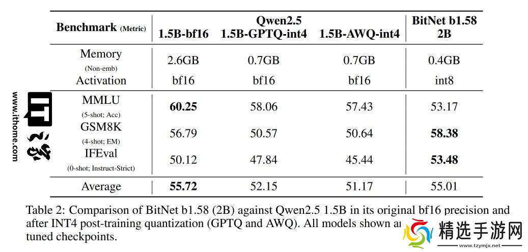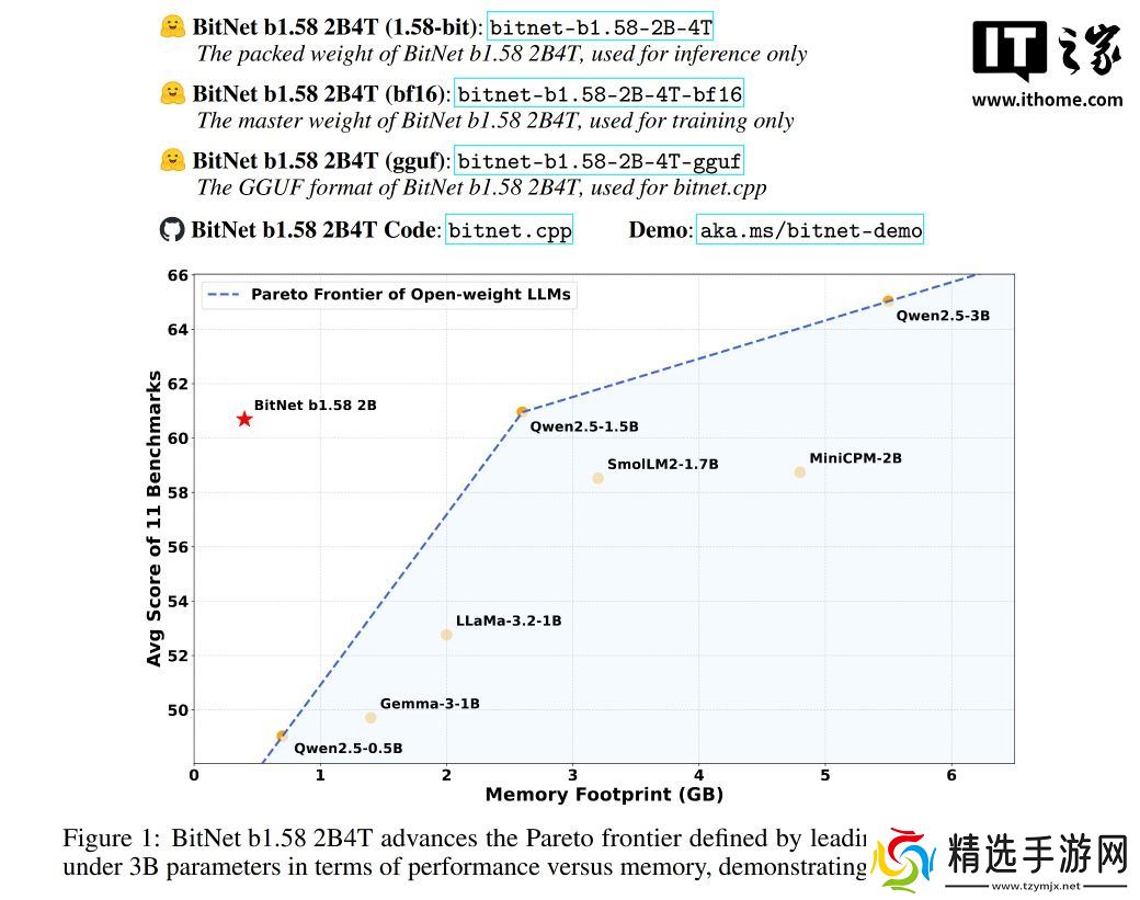 本站援引技术报告介绍,该模型性能直追同规模全精度模型,但计算资源需求大幅缩减。尤其令人瞩目的是,其非嵌入内存占用仅 0.4GB,远低于竞品 Gemma-3 1B 的 1.4GB 和 MiniCPM 2B 的 4.8GB。