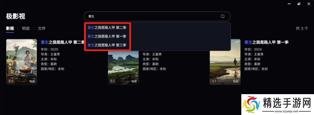 极影视搜索增加提示词功能,优化搜索词索引,搜索结果分影视剧、演员、文件进行筛选