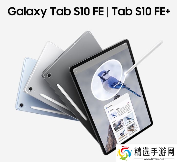 Galaxy Tab S10 FE 系列提供清雅灰、月光银、冰清蓝三款配色,标准版和 Plus 版分别配备 10.9 英寸、13.1 英寸 LCD 显示屏,支持 90Hz 刷新率,高亮模式下峰值亮度可达 800 尼特。S Pen 触控笔集多种书写工具于一体,支持即圈即搜功能。