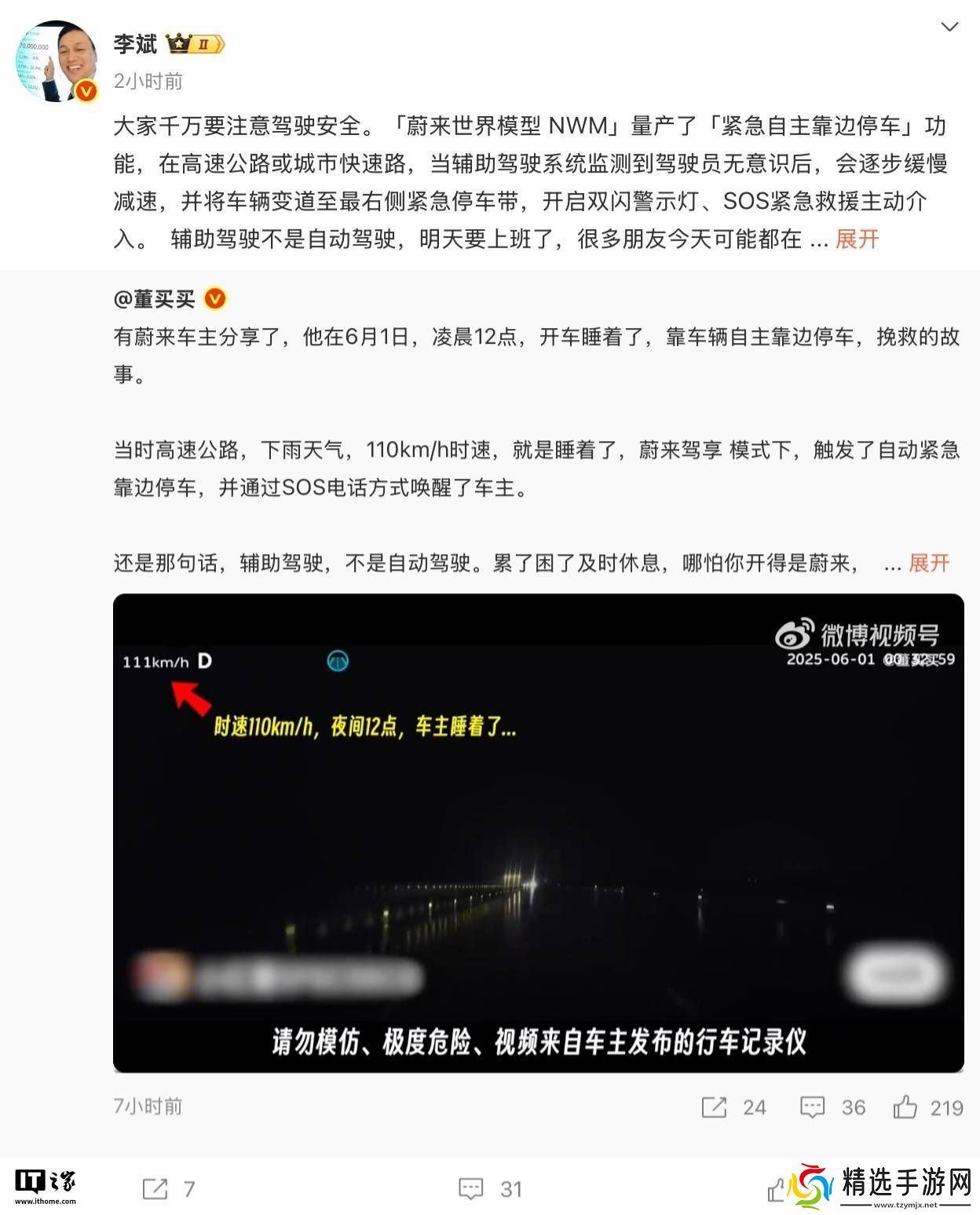 蔚来汽车的创始人李斌迅速注意到了这一事件,并亲自在社交媒体上进行了转发,同时向公众发出了安全驾驶的再次提醒。他强调,尽管蔚来的“世界模型NWM”已经成功实现了“紧急自主靠边停车”功能的落地应用,但这并不意味着辅助驾驶可以完全替代自动驾驶。在驾驶过程中,驾驶员仍然需要保持高度的警惕,确保行车安全。