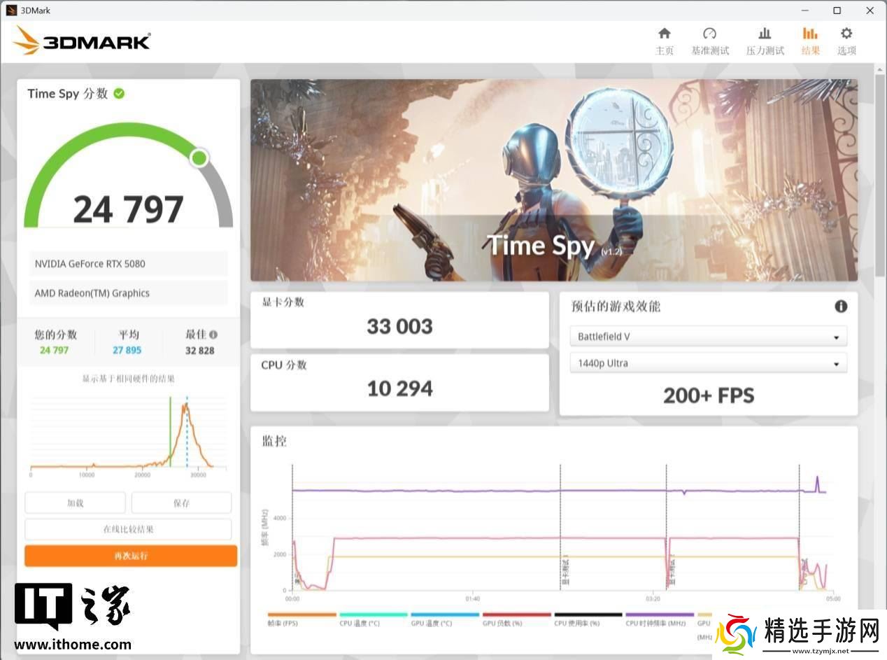 在理论性能测试中,索泰GeForce RTX 5080 16GB天启OC显卡在3DMark Time Spy DX12测试中得分33003分,相比RTX 4080 SUPER提升了约12.9%。在光追测试中,该显卡同样表现出色,得分22881分,相比RTX 4080 SUPER提升了约24%。