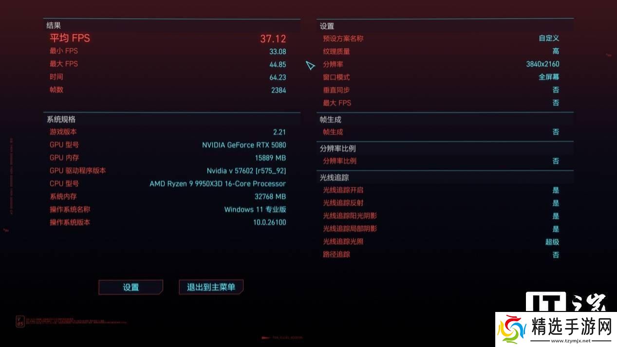 游戏实测方面,我们选择了多款热门游戏进行测试。在《CS2》中,索泰GeForce RTX 5080 16GB天启OC显卡在4K分辨率下平均帧数达到了316帧,相比RTX 4080 SUPER提升了22%。在《古墓丽影:暗影》中,该显卡同样表现出色,平均帧数达到了156帧,相比RTX 4080 SUPER提升了15.5%。