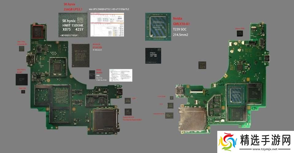 据悉,Switch 2将搭载一款由英伟达定制的Tegra T239芯片。Kurnal分享的图片虽然因分辨率限制无法完全辨认所有细节,但仍可清晰看到主板上配备有SK海力士提供的256GB UFS 3.1存储颗粒,以及联发科提供的Wi-Fi芯片。这些组件的加入无疑将提升Switch 2的性能和存储能力。