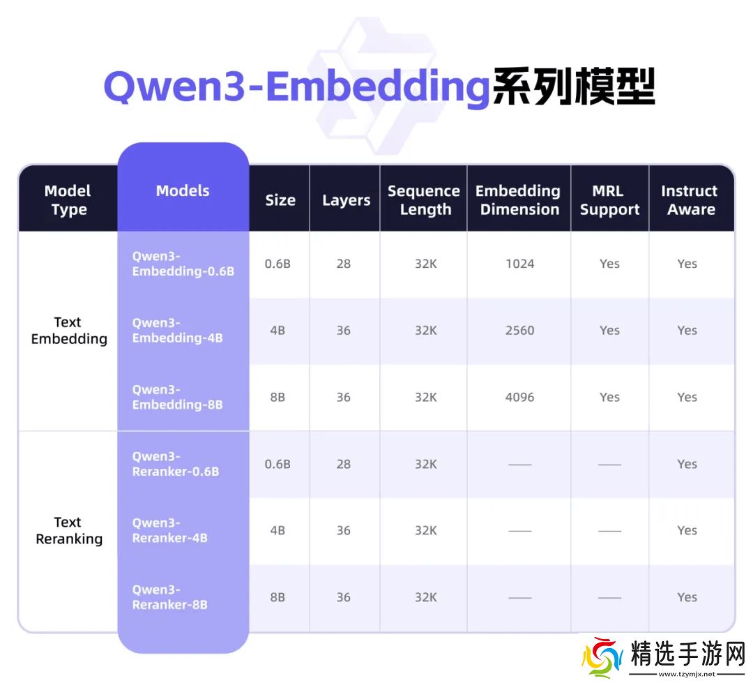 在模型使用方面,Embedding模型主要接收单段文本作为输入,通过取模型最后一层“EOS”标记对应的隐藏状态向量,作为输入文本的语义表示。而Reranker模型则接收文本对(如用户查询与候选文档)作为输入,利用单塔结构计算并输出两个文本的相关性得分。这一设计使得Qwen3-Embedding系列在文本检索和排序任务中能够发挥出色的性能。