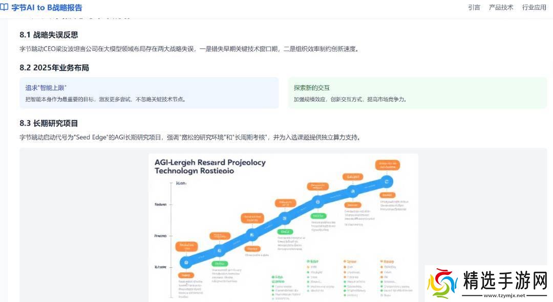 在实际体验中,扣子的Agent更像是OpenAI发布的DeepResearch和Manus的结合体。以“字节一年To B的AI战略”为例,让扣子Agent帮忙收集信息并生成分析报告。Agent将任务拆解成多个步骤,并在用户的指导下逐步完成,最终输出了一份长达10个小节的报告。虽然内容较为简略,但已经基本覆盖了各个维度的信息。