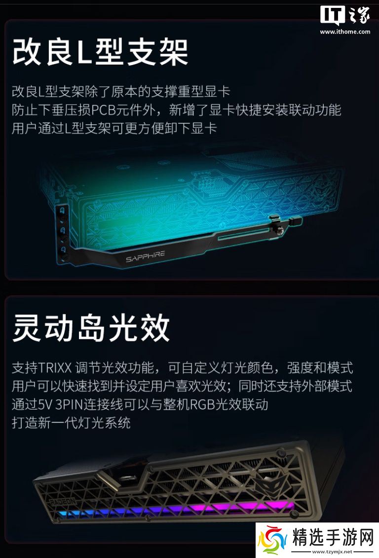 此外,该显卡还随附有 L 型支架,该支架采用了新设计,端头采用橡胶设计,在防止显卡“变弯”的同时,玩家还可借助该橡胶端头轻松取出显卡,方便升级 / 清灰。