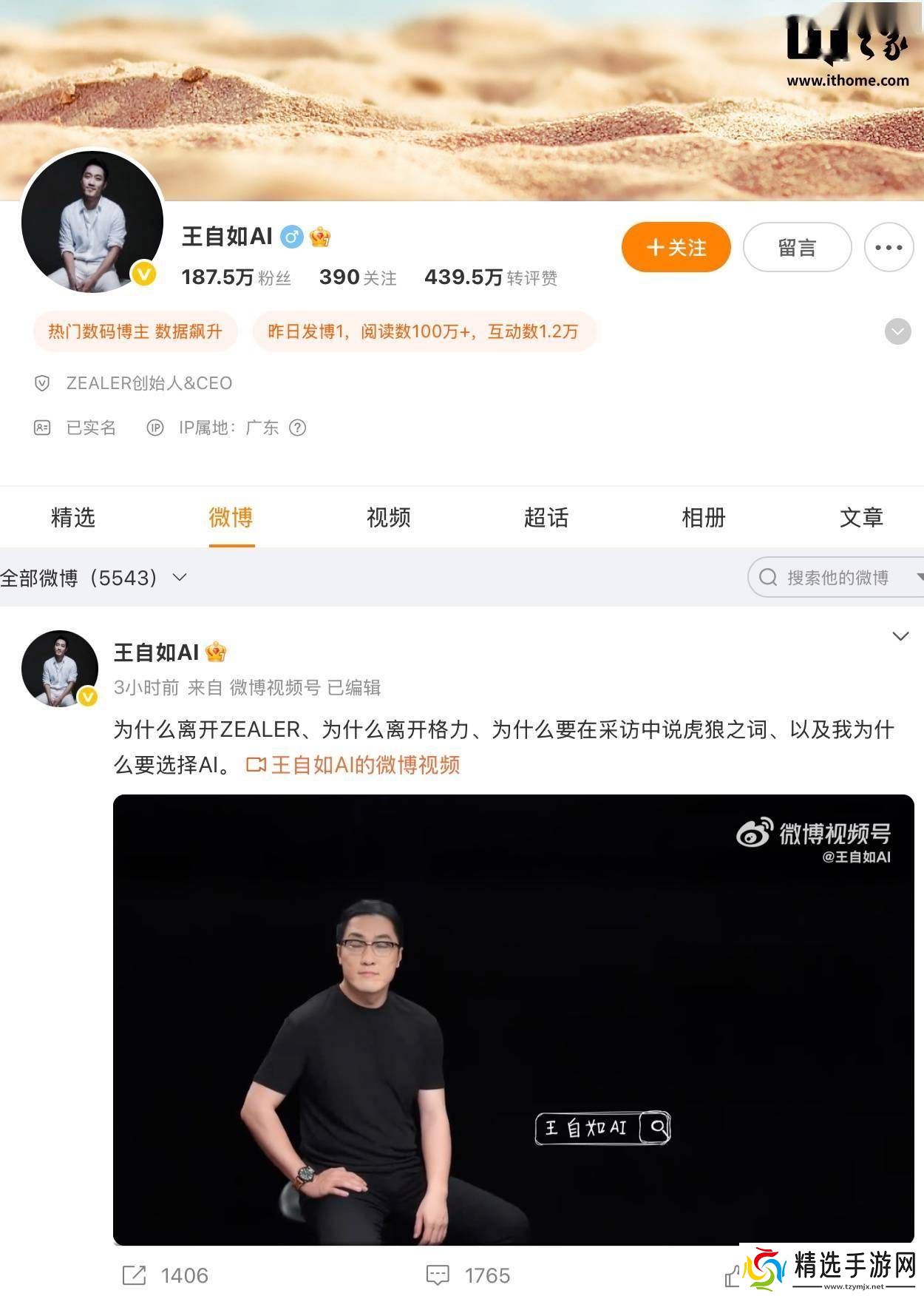 王自如透露,他计划重新回归“手艺人”的身份,将自己对互联网、AI、实体产业以及消费电子行业的深刻理解,分享给所有关心这些领域的人们。他希望通过自己的努力和专业知识,推动产业的数字化升级。