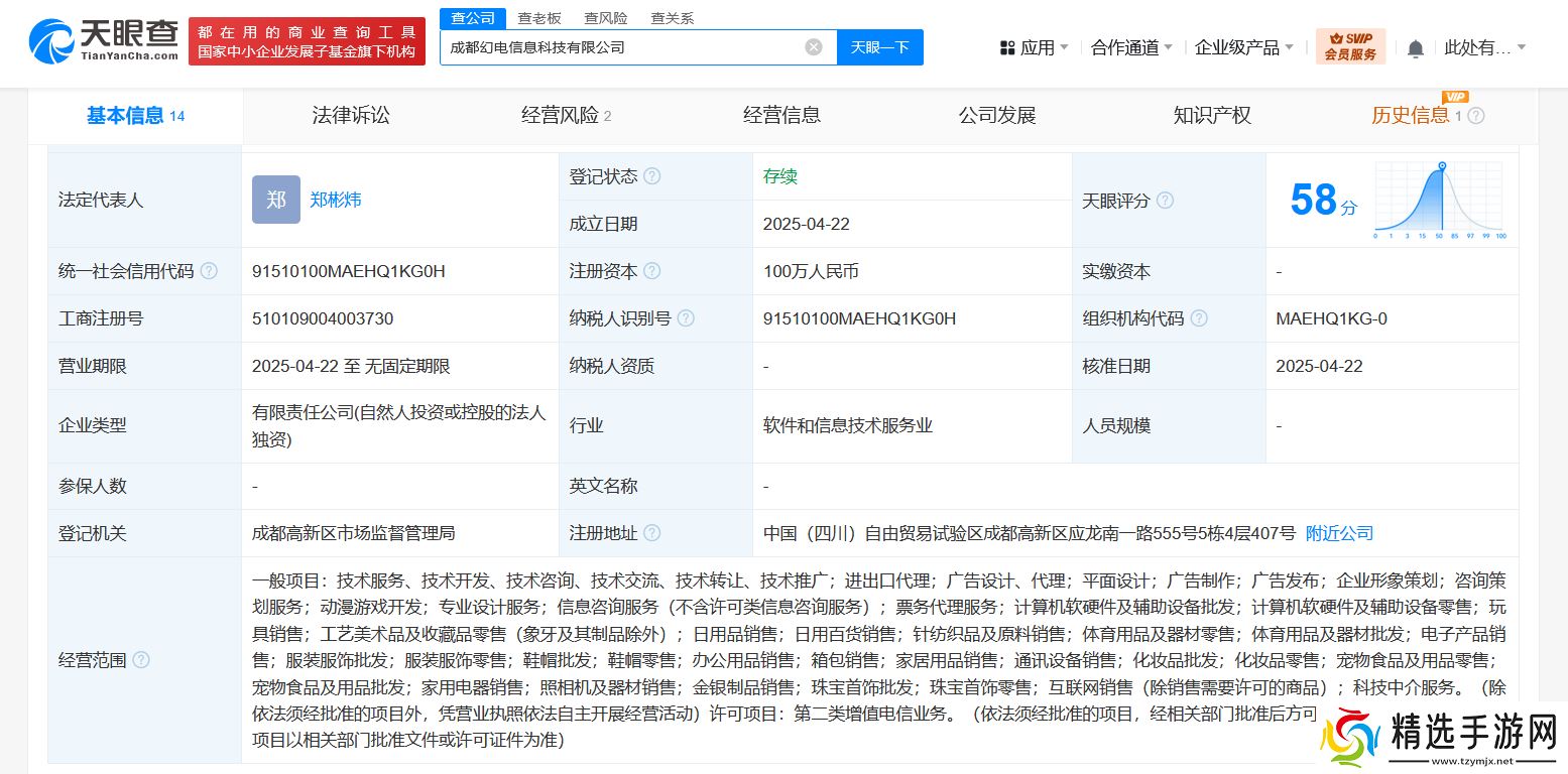 近日,一家名为成都幻电信息科技有限公司的新企业正式宣告成立,这一消息引起了业界的广泛关注。据天眼查信息显示,该公司的法定代表人为郑彬炜,注册资本高达100万元人民币。