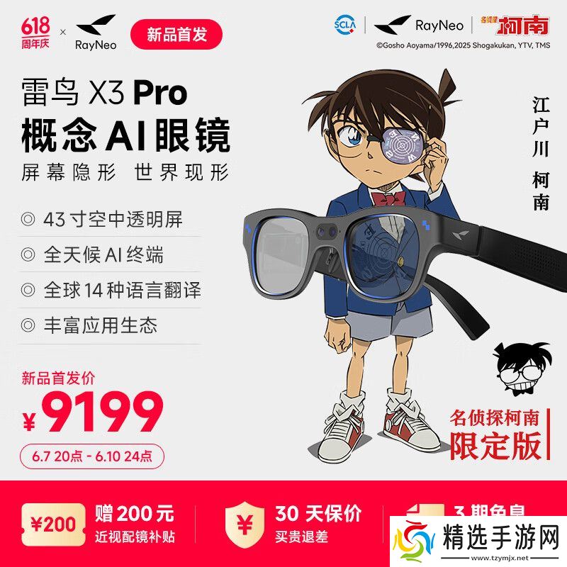 京东雷鸟 RayNeo X3 Pro 柯南联名款 9199 元直达链接京东 618 无门槛红包至高 25618 元:点此抽今日红包