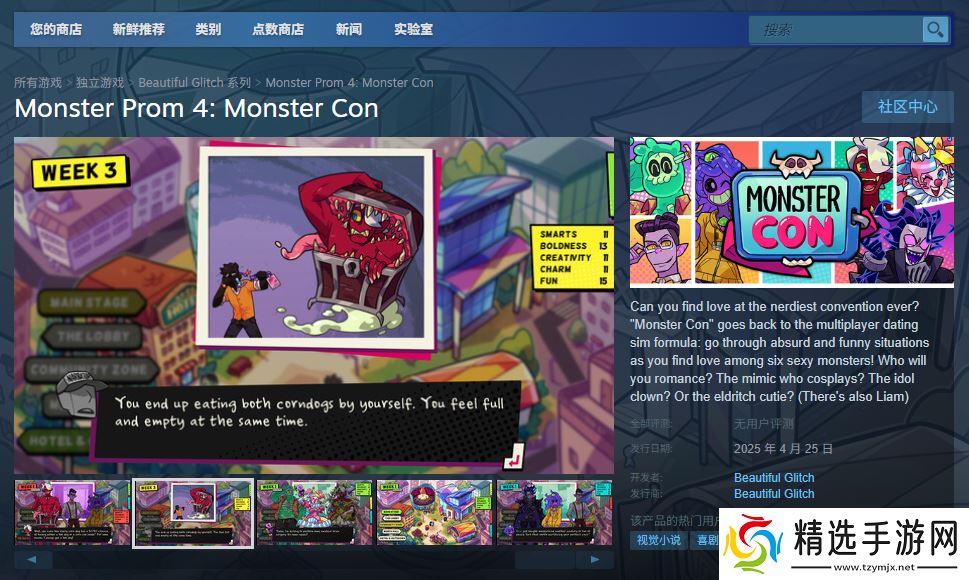 Steam平台需要先安装Steam平台,之后注册一个账号登录,然后搜索“Monster Prom 4: Monster Con”进入商店购买页面。