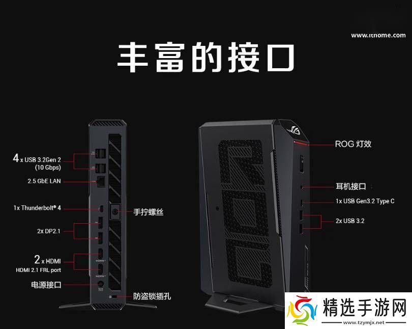 这两款ROG NUC迷你主机还提供了丰富的接口选项,以满足用户的多种连接需求。前部接口包括1个3.5mm音频接口、1个USB-C 3.2接口以及2个USB-A 3.2接口;后部接口则包括4个USB-A 3.2 Gen 2接口、1个2.5G网口、1个雷电4接口、2个DP 2.1接口以及2个HDMI 2.1接口。在无线连接方面,则支持蓝牙5.4和最新的Wi-Fi 7标准,为用户提供了快速稳定的网络连接。