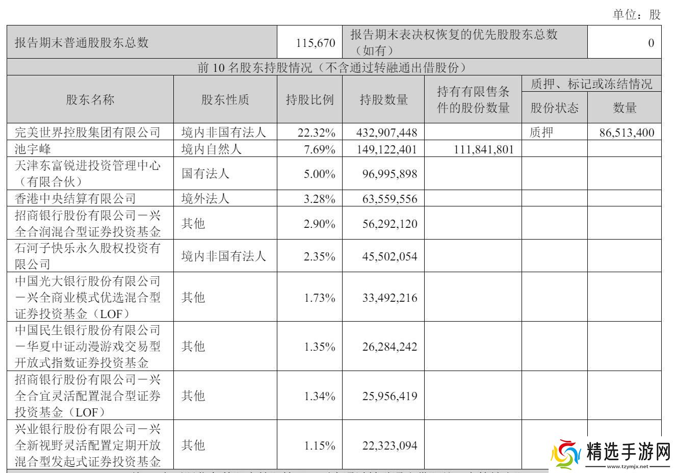 从股权结构来看,完美世界控股集团有限公司持股比例为22.32%,池宇峰持股7.69%,天津东富锐进投资管理中心(有限合伙)持股5%。值得注意的是,香港中央结算有限公司在本报告期内继续增持了完美世界的股权,持股比例达到3.28%。