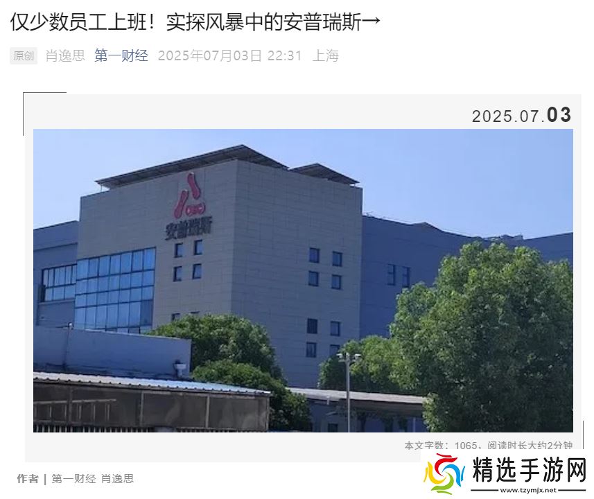 据第一财经今日报道,记者实探安普瑞斯(无锡)有限公司厂区发现,安普瑞斯厂区如今的冷清,在上班时间显得尤为明显。在 7 月 3 日上午 8 点至 8 点半的上班时间段,仅看到约 20~30 人次员工陆续进入厂区,员工上班均需人脸认证后方可进入。