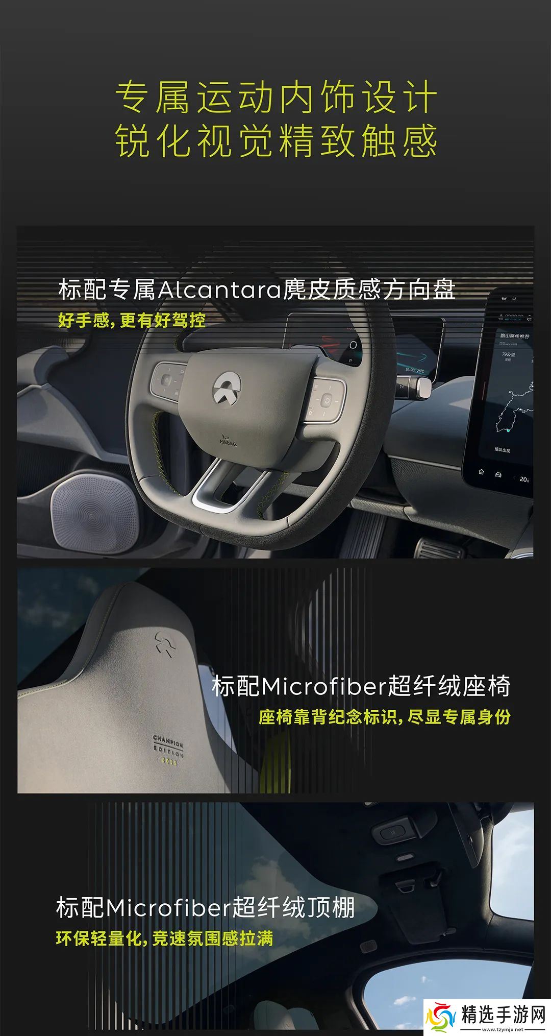 新车还标配专属 Alcantara 麂皮质感方向盘、Microfiber 超纤绒座椅及顶棚、专属竞速绿安全带。