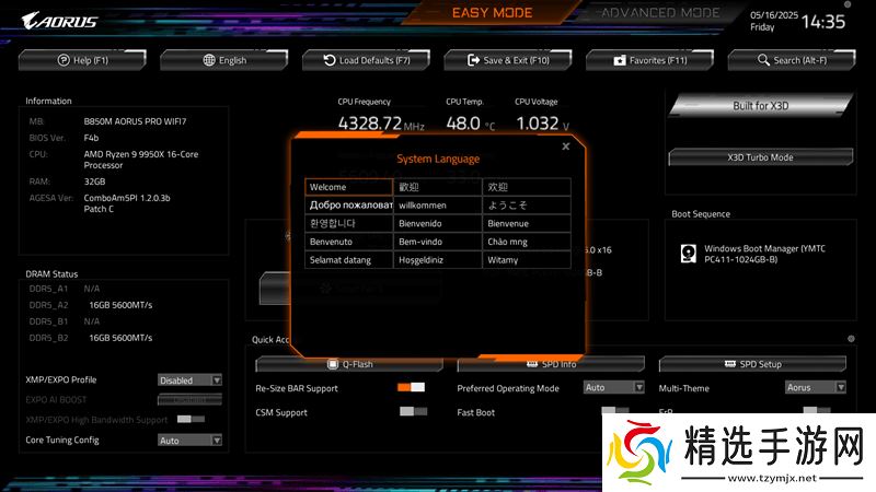 技嘉B850M 电竞雕主板的BIOS设计简洁易用,EASY MODE提供了用户最常用的信息和设置选项,如内存EXPO设置等。高级模式则提供了更细致的设定,如AMD处理器的PBO功能,方便用户进一步挖掘处理器性能。然而,需要注意的是,高级设置可能对散热器和CPU寿命有较高要求,普通用户应谨慎使用。