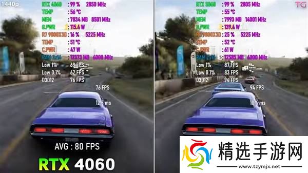 以《极限竞速 地平线5》为例,RTX 5060在1080p和1440p分辨率下的平均帧率分别达到了125FPS和100FPS,相较于RTX 4060的100FPS和80FPS,性能提升显著,达到了25%。这一数据无疑为RTX 5060的性能实力提供了有力证明。