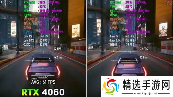 在另一款热门游戏《赛博朋克2077》中,RTX 5060同样展现出了不俗的性能表现。在1080p和1440p分辨率下,其平均帧率分别为73FPS和46FPS,领先RTX 4060约19.67%和21.05%。这一数据进一步巩固了RTX 5060在游戏玩家心中的地位。